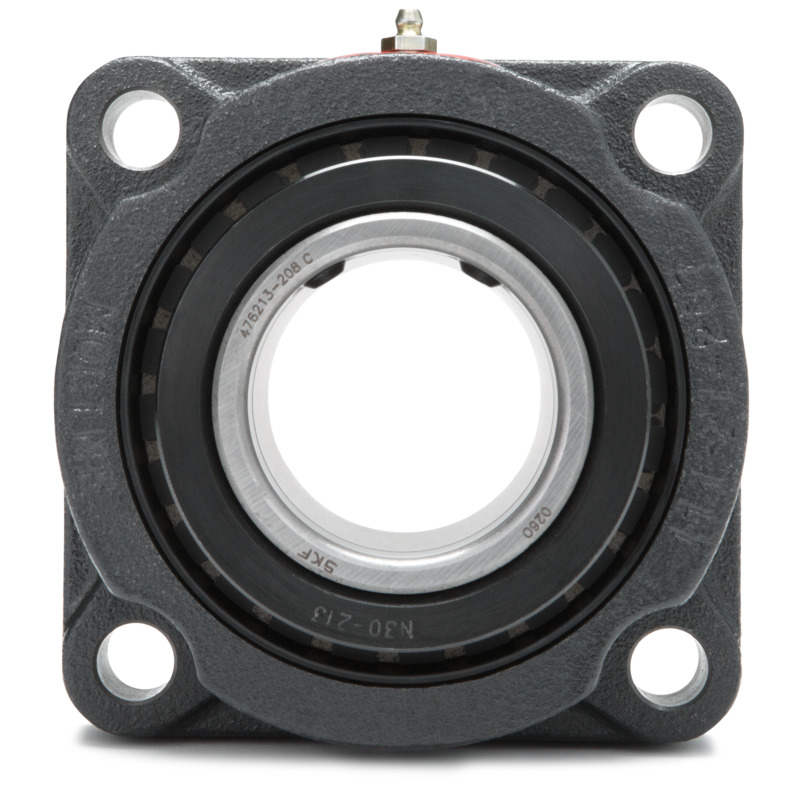 Made of Cast Iron, this Solid M2000 4-Bolt Flange is a Non-Expansion Mounted Roller Bearing Bearing with a 65mm mm (2.5591 in) shaft size. Includes a Steel Set Screw Locking Insert with a Single Collar, an available Standard Triple Lip Contact Seal made of Nitrile, and a Standard Painted finish, this bearing is ready for even the toughest of jobs.
